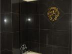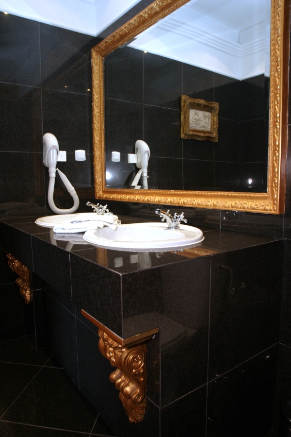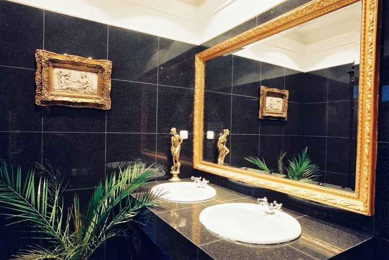 - Łazienka wykończona kolumnami i złoconymi głowicami